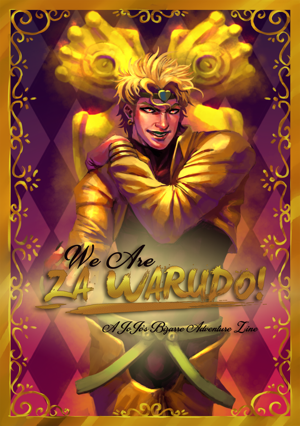 We Are ZA WARUDO! is a Jojo's Bizarre Adventure fanzine centered around song inspiration. All proceeds from sales of this zine are being donated to the Sex Workers Outreach Project-USA.